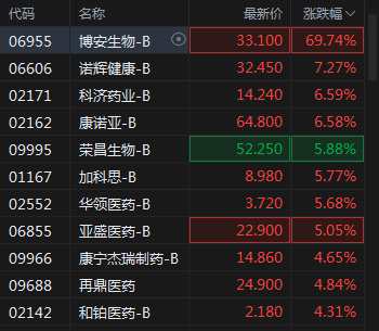 快訊:生物醫(yī)藥B類股集體走強(qiáng) 博安生物漲近70%諾輝健康漲超7%