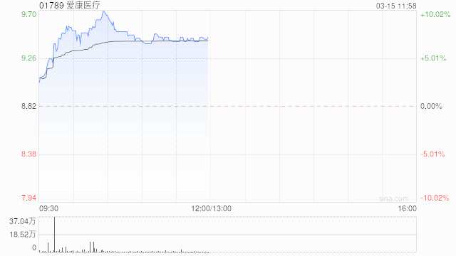 愛康醫(yī)療(01789)再度走強,早盤上升6.80%,報9.42港元,成交額1519.26萬港元。