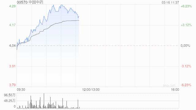 中醫(yī)藥概念股繼續(xù)走高 中國中藥漲超5%現(xiàn)代中藥集團(tuán)漲超3%