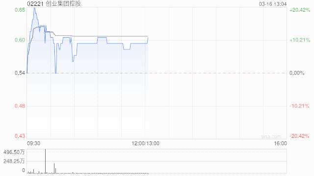 創(chuàng)業(yè)集團控股(02221)迎來4連升,早盤上升7.41%,現(xiàn)報0.58港元,成交額868.98萬港元。