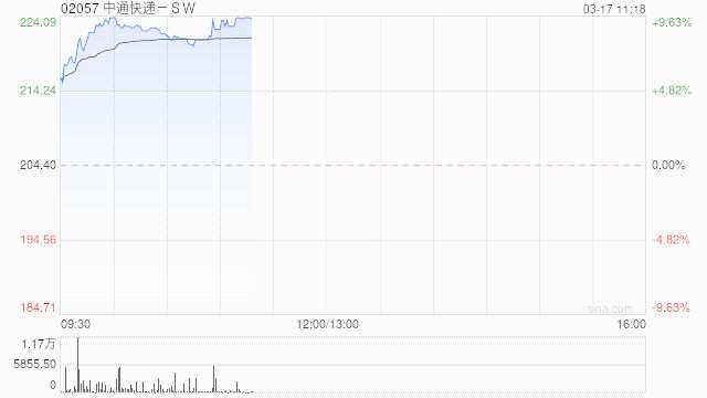 中通快遞-SW(02057)績后上漲8.71%,現(xiàn)報222.20港元,成交額1867.22萬港元。