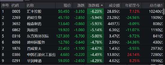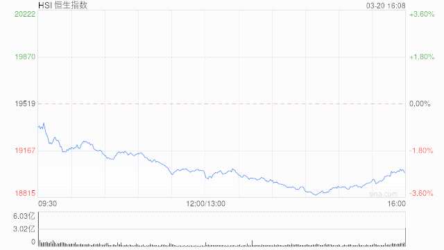 隨著硅谷銀行等相繼倒閉,瑞信被瑞銀收購,市場避險情緒升級,今日開盤恒指低開低走,收跌2.65%,報19000.71點,匯豐控股大跌逾6%,翰森制藥、藥明生物等跌近6%,海底撈、東方海外國際等跌5%。