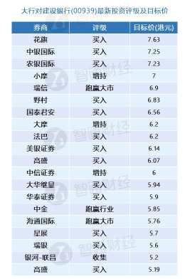 建設銀行將于本月29日公布2022年業(yè)績 大行更新評級及目標價(表)