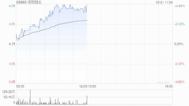 洛陽鉬業(yè)尾盤升超4% 2022年凈利潤同比增加18.82%