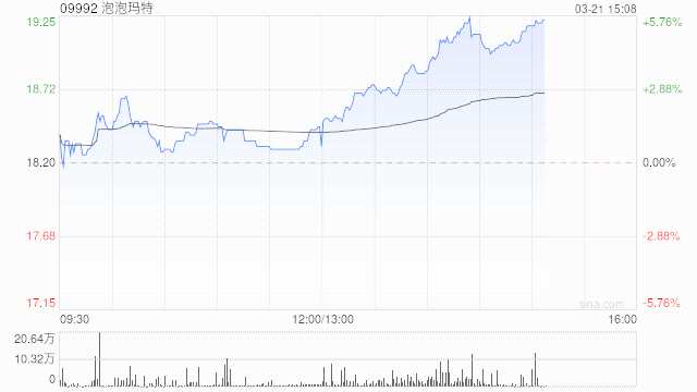 泡泡瑪特(09992)午后上漲4.62%,現(xiàn)報19.04港元,成交額9096.264萬港元。