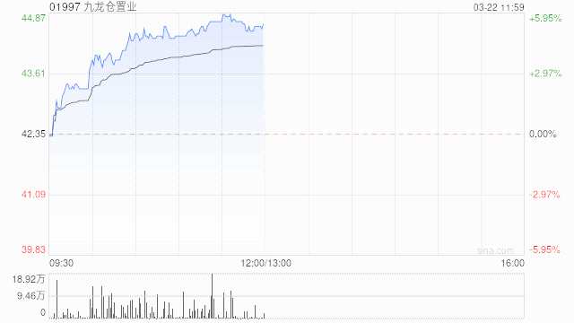 九龍倉置業(yè)(01997)早盤放量走高,上漲5.55%,現(xiàn)報44.70港元,成交額1.682億港元。