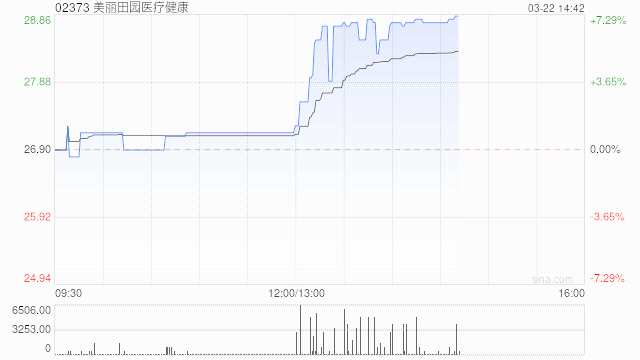 美麗田園醫(yī)療健康(02373)溫和走高,午后上漲7.06%,現(xiàn)報(bào)28.80港元,成交額278.775萬港元。