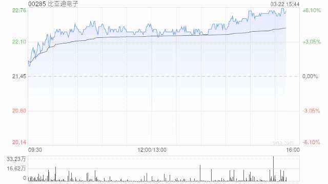 比亞迪電子(00285)繼續(xù)反彈,午后上升5.59%,現(xiàn)報(bào)22.65港元,成交額1.484億港元。