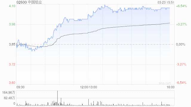 中國鋁業(yè)(02600)止跌回升,午盤上漲5.71%,現(xiàn)報(bào)4.07港元,成交額1.004億港元。