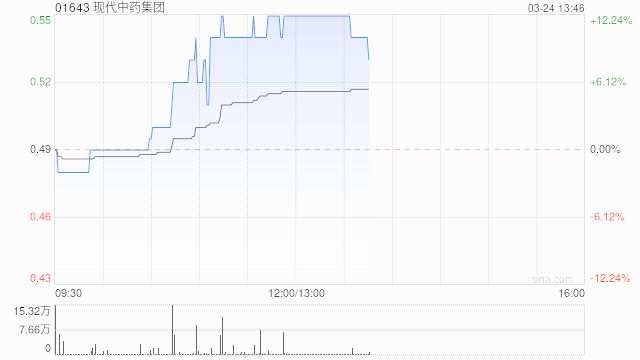 現(xiàn)代中藥集團(tuán)上升12% 2022年收益約4億元同比增長(zhǎng)10.8%