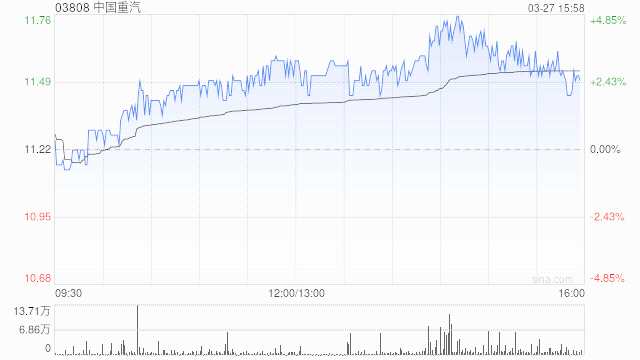 中國重汽午盤漲近4% 機構稱2月中重卡銷量同比大幅轉正