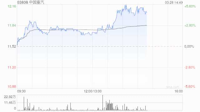 重卡概念股繼續(xù)走高 中國(guó)重汽漲近5%濰柴動(dòng)力漲近4%