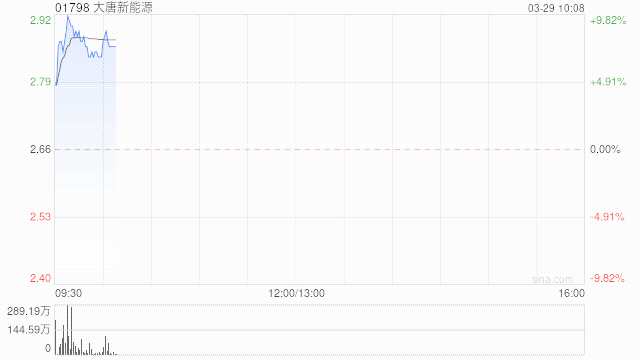大唐新能源(01798)早盤上漲7.14%,現(xiàn)報(bào)2.85港元,成交額6674.585萬港元。