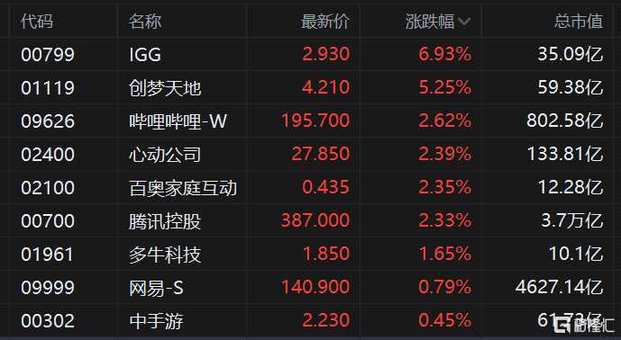摘要: 互聯(lián)網(wǎng)3月29日丨IGG一度漲超8%,半個月累計(jì)升幅高達(dá)30%,創(chuàng)夢天地漲超5%,嗶哩嗶哩、心動公司、騰訊均漲超2%。經(jīng)歷22年4月的版號重啟、10月的暫停,以及11-12月的正常發(fā)放,