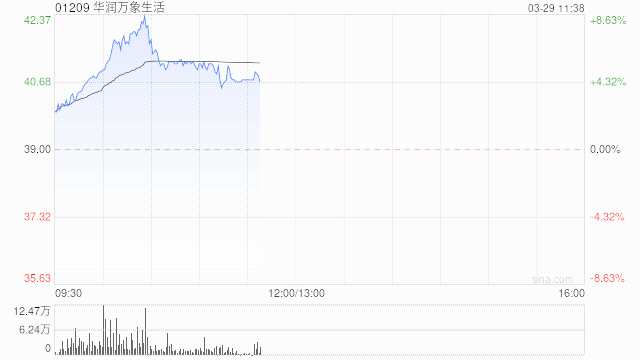 華潤萬象生活(01209)績后繼續(xù)走高,早盤上漲5.64%,現(xiàn)報(bào)41.20港元,成交額1.069億港元。