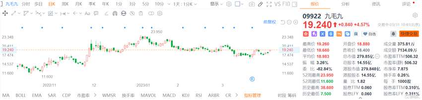 九毛九漲4.6% 獲多家機(jī)構(gòu)看好