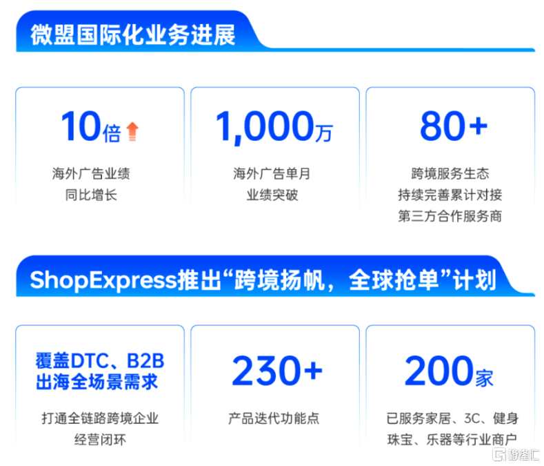 另外,為支持疫后經(jīng)濟(jì)復(fù)蘇,幫助跨境企業(yè)快速出海搶奪訂單,微盟Shopexpress于去年12月推出“跨境揚(yáng)帆,全球搶單”計(jì)劃,主要面向來自家居、3C、健身、珠寶、樂器等行業(yè)的新客戶,高效賦能中國企業(yè)占領(lǐng)海外市場份額,同時(shí)也為自身釋放國際化業(yè)務(wù)增量。