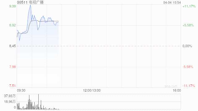 電視廣播(00511)早盤(pán)上漲5.92%,現(xiàn)報(bào)8.95港元,成交額5286.074萬(wàn)港元。