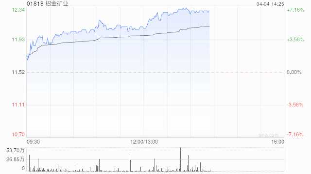 黃金股午后走高 招金礦業(yè)漲近7%山東黃金漲近5%