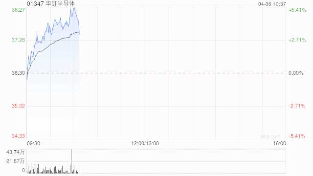 華虹半導(dǎo)體(01347)早盤放量上揚(yáng),上漲4.68%,現(xiàn)報(bào)38.00港元,成交額1.607億港元。