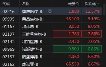 快訊:生物醫(yī)藥B類股集體上漲,堃博醫(yī)療漲近13%榮昌生物漲超9%