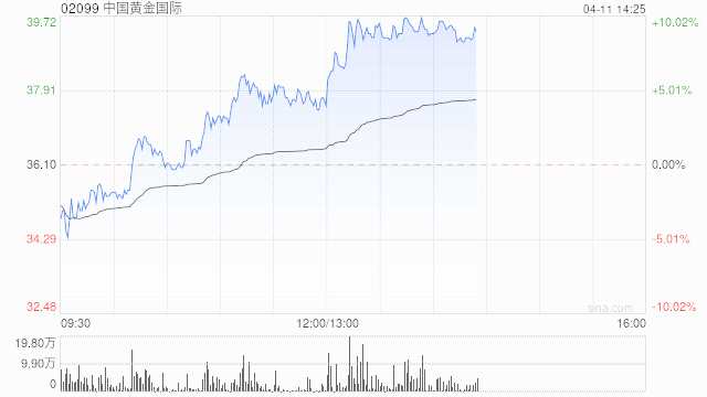 黃金股午后走高,中國黃金國際(02099)漲9.42%,報(bào)39.50港元,成交額2.795億港元;靈寶黃金(03330)漲9.35%,報(bào)1.52港元,成交額1308.716萬港元;山東黃金(600547)(01787)漲3.33%,報(bào)17.36港元,成交額1.968億港元;招金礦業(yè)(01818)漲2.03%,報(bào)13.08港元,成交額2.830億港元。