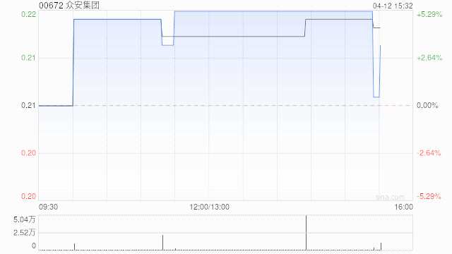 眾安集團(tuán)(00672)現(xiàn)漲5.29%,報(bào)0.219港元,港股市值12.34億港元。