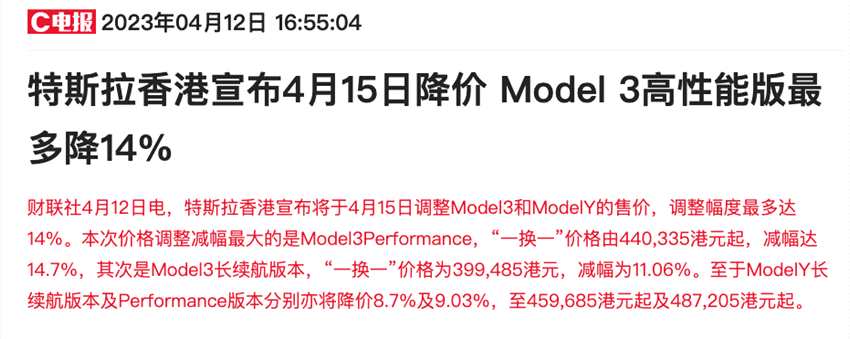 今日盤后特斯拉香港宣布自4月15日將開啟降價(jià),各類車型降幅約在9%-14%不等。