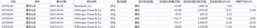 根據(jù)聯(lián)交所最新權(quán)益披露資料顯示,2023年4月6日,康龍化成(300759)(03759.HK)獲JPMorgan Chase & Co.以每股均價(jià)35.6562港元增持好倉(cāng)125.5萬(wàn)股,涉資約4474.61萬(wàn)港元。
