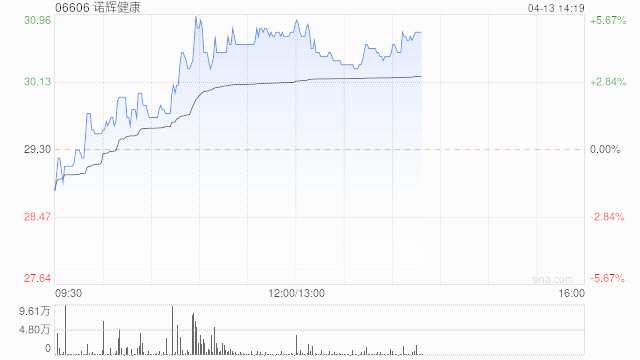 諾輝健康(06606)午盤上漲4.27%,報(bào)30.55港元,成交額5445.48萬港元。
