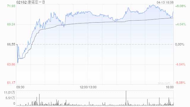 康諾亞-B(02162)尾盤上漲6.69%,報(bào)71.00港元,成交額1.766億港元。