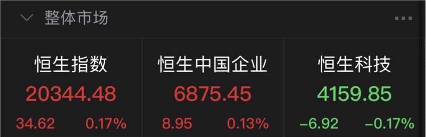 中新經(jīng)緯4月13日電 13日,港股三大指數(shù)低開(kāi)高走。截至收盤(pán),恒指漲0.17%報(bào)20344.48點(diǎn),恒生國(guó)企指數(shù)漲0.13%報(bào)6875.45點(diǎn),恒生科技指數(shù)跌0.17%報(bào)4159.85點(diǎn)。