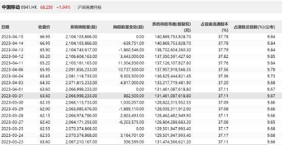 中國移動獲內(nèi)資持續(xù)掃貨,從年初的18.75億股一路增至21.04億股,凈增加2.3億股,持有流通股比重高達(dá)377.8%。