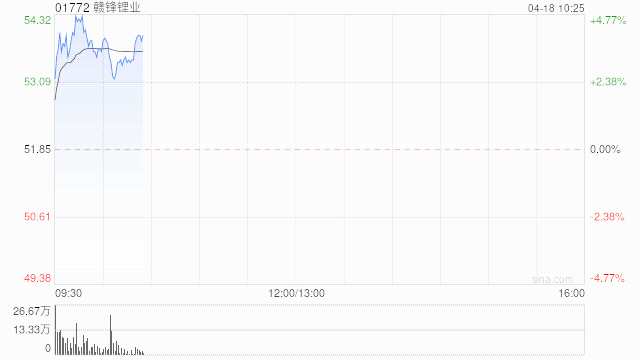 鋰電池概念股早盤多數(shù)上揚(yáng),贛鋒鋰業(yè)(002460)(01772)上漲3.06%,報(bào)53.45港元;天齊鋰業(yè)(002466)(09696)上漲1.22%,報(bào)58.00港元;彩客新能源(01986)上漲1.48%,報(bào)1.37港元;超威動(dòng)力(00951)上漲0.6%,報(bào)1.69港元。
