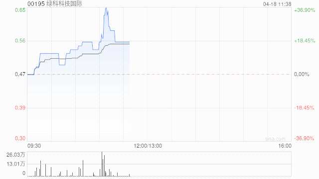 綠科科技國(guó)際(00195)昨日收漲近12%,今日早盤(pán)再漲22.11%,報(bào)0.58港元,成交額87.494萬(wàn)港元。