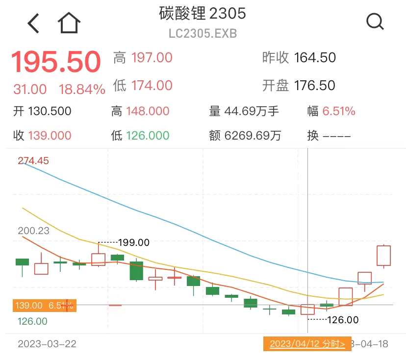 消息面上,碳酸鋰期貨連續(xù)反彈,碳酸鋰2305合約近5個交易日累漲超55%,截至發(fā)稿報195.5元(對應(yīng)報價19.55萬元/噸)。