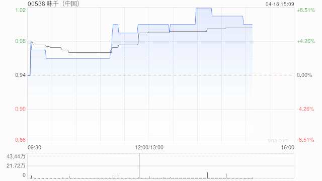 摘要: 味千(中國)(00538)曾漲超8%,高見1.03港元,創(chuàng)2022年5月份以來高點?,F(xiàn)上漲6.38%,報1.00港元,成交額107.016萬港元。4月14日,味千(中國)在香港交易所官方網(wǎng)站發(fā)布公告稱