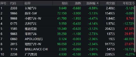 汽車股集體大跌,長(zhǎng)城汽車跌6.6%,蔚來(lái)跌超5%,吉利、小鵬跌超4%,零跑、理想等跌超2%。