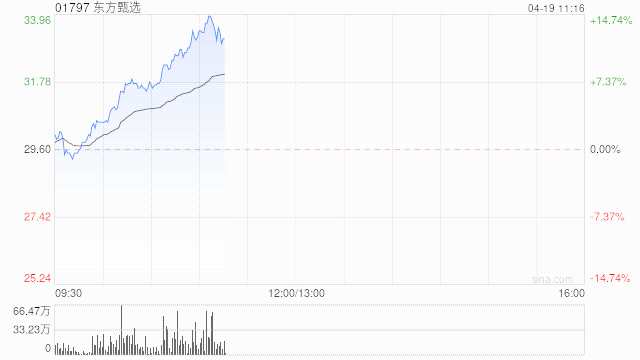 東方甄選(01797)早盤大漲8.78%,報32.20港元,成交額2.844億港元。