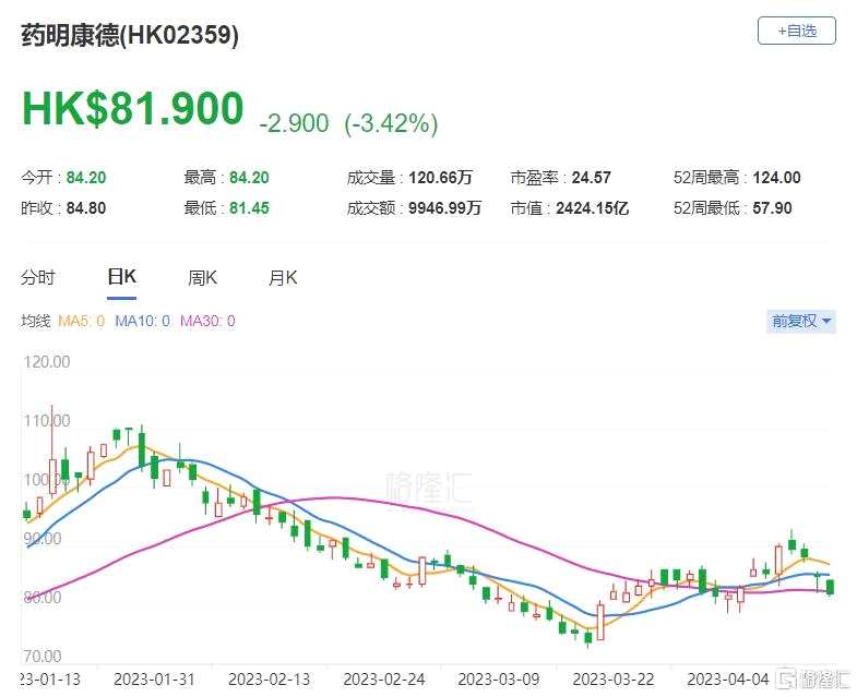 互聯(lián)網(wǎng)4月19日丨里昂發(fā)表報(bào)告,預(yù)計(jì)藥明康德(603259)(2359.HK)首季收入同比增長6%,和非國際財(cái)務(wù)報(bào)告準(zhǔn)則計(jì)(non-IFRS)經(jīng)調(diào)整凈利潤增長介于13%至15%,并看好該股因今年利潤率可能同比上升、在宏觀不確定下全球市場份額呈提升、估值比同行更有吸引力,及A股持股敞口更高。里昂維持對(duì)該股收入預(yù)測不變,但將今年至后年凈利潤預(yù)測提高7%至11%,以反映潛在的利潤率擴(kuò)張。H股目標(biāo)價(jià)由124港元提高到126港元,重申“買入”評(píng)級(jí),料本季及第三季美國潛在加息周期完結(jié)屬核心催化劑。該股現(xiàn)報(bào)81.9港元,總市值2424億港元。