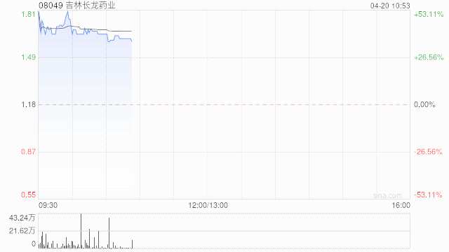 吉林長(zhǎng)龍藥業(yè)(08049)早盤曾飆漲逾50%,高見1.90港元,創(chuàng)2017年4月份以來高點(diǎn)?,F(xiàn)漲37.29%,報(bào)1.62港元,成交額651.304萬港元。