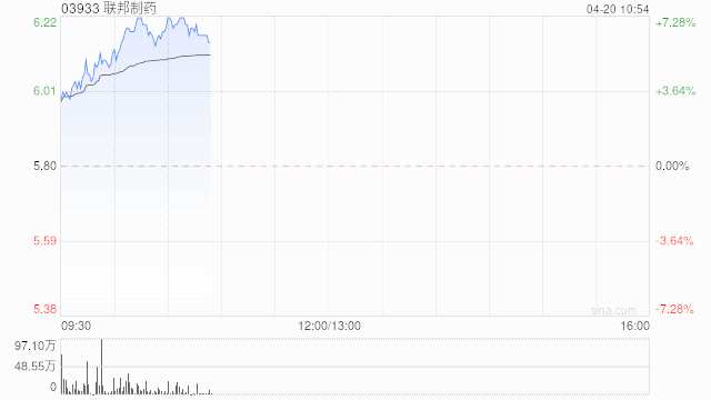 聯(lián)邦制藥(03933)早盤上漲6.38%,現(xiàn)報6.17港元,成交額6419.864萬港元。