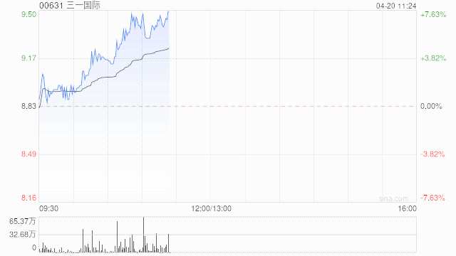 三一國(guó)際(00631)早盤活躍,上漲7.14%,現(xiàn)報(bào)9.46港元,成交額5769.589萬(wàn)港元。