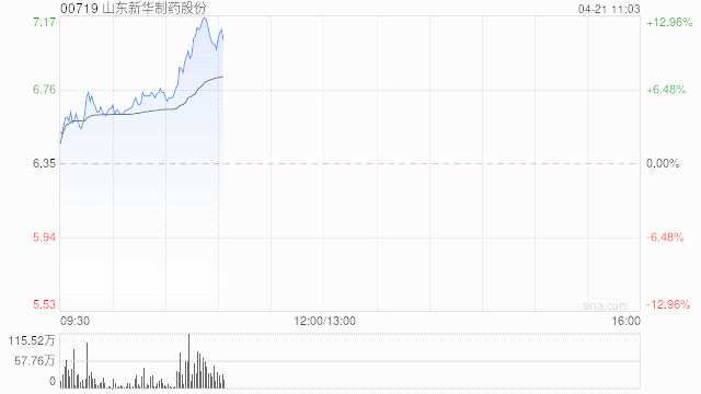 山東新華制藥(000756)(00719)早盤(pán)上漲6.14%,報(bào)6.742港元,成交額7556.948萬(wàn)港元。