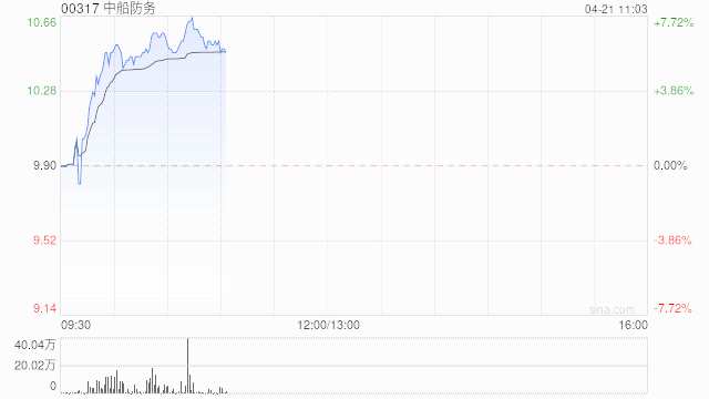 中船防務(wù)(00317)早盤上漲7.27%,報(bào)10.62港元,成交額3770.11萬港元。
