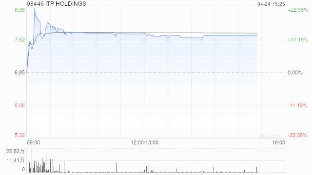 ITP HOLDINGS(08446)今日復(fù)牌,現(xiàn)漲12.70%,報7.72港元,成交額2560.972萬港元。