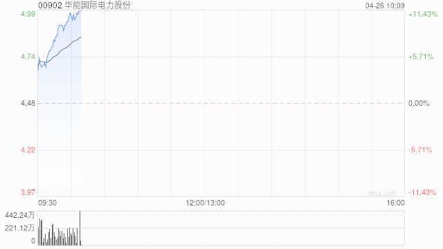 電力板塊早盤高開高走 華能國(guó)電及華電國(guó)際電力均漲超9%