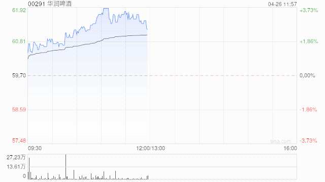 啤酒股集體上揚 華潤啤酒及青島啤酒均漲逾3%