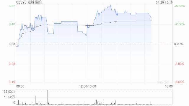 威勝控股(03393)午盤上漲4.14%,報3.52港元,成交額897.456萬港元。
