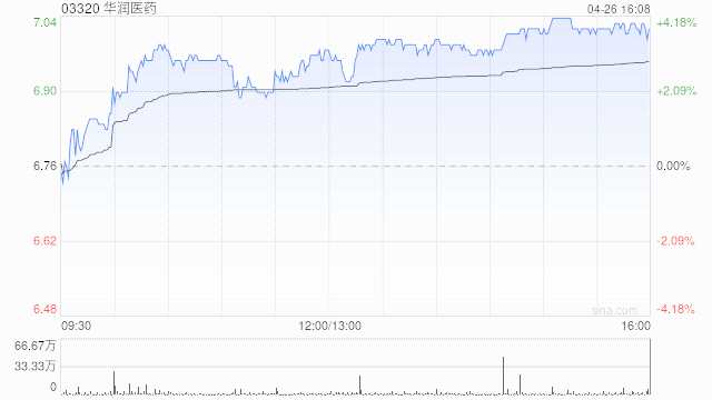 華潤醫(yī)藥尾盤漲近4% 旗下東阿阿膠及博雅生物一季度純利同比大增